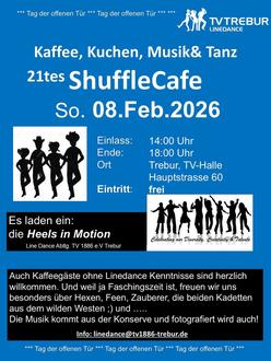 ...gute Musik, gut gelaunte, tanzende Menschen und Kaffeeduft! Die Line-Dance Abteilung des TV1886 e. V., Trebur hat ihre Türen geöffnet und lädt zu Kaffee und Kuchen anlässlich eines Tages der offenen Tür. Sie haben die Gelegenheit, den Sportlerinnen bei der Ausübung ihres Tanzsports zuzusehen und mit ihnen ins Gespräch zu kommen. Lassen Sie sich begeistern von der entspannten, unaufgeregten und fröhlichen Stimmung.