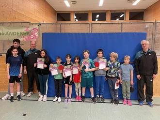 Bereits zum neunten Mal trug die Tischtennisabteilung des TSV Trebur am Mittwoch, den 05. Februar einen Ortsentscheid der mini-Meisterschaften aus. Bundesweit kommen in 42 Jahren bereits über 1,5 Millionen Mädchen und Jungen zusammen, die im Rahmen der Breitensportaktion zum Schläger griffen. Mit 8 Teilnehmerinnen und Teilnehmern waren in diesem Jahr zwei Akteure mehr in die Halle gekommen als letztes Jahr. Die Organisatoren um Tischtennis-Abteilungsleiter Dirk Wehner sahen viele schöne Spiele auf bereits hohem Niveau. Um allen Mädchen und Jungen möglichst viele Spiele zu ermöglichen, spielten die Mädchen und Jungen jeweils altersübergreifend in zwei Gruppen im Modus "Jeder gegen Jeden". Egal ob komplett neu im Tischtennis eingestiegen oder bereits im Verein trainierend: Es kam zu vielen tollen Ballwechseln und knappen Spielen. Mit viel Freude wurden die TT-Bälle gekonnt übers Netz gejagt. An einem leckeren Buffet mit Kuchen, Keksen, Würstchen und Laugengebäck konnten die Energiereserven schnell wieder aufgefüllt werden. Nach rund 2 Stunden kurzweiligem Turniergeschehen, bei dem das TSV-Trainer und -Betreuerteam als Schiedsrichter der einzelnen Partien fungierten, fand der Abend um 19:00 Uhr mit der Siegerehrung einen gebührenden Abschluss. Neben kleinen Sachpreisen wie TT-Schlüsselanhängern und bunten Bällen bekam jedes Kind eine Urkunde, die auch zum kostenlosen Besuch eines Bundesligaspiels berechtigt. Das TT-Event macht Lust auf mehr, sodass zukünftig in den Tischtennis-Trainingszeiten mittwochs um 17:00 Uhr in Trebur und donnerstags ab 18:00 Uhr in der Geinsheimer Grundschulhalle weiter geübt werden kann.