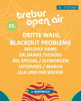 Das Trebur Open Air (TOA) wird seit 1993 ausschließlich von ehrenamtlich Helfenden organisiert, geplant und durchgeführt. In der Rhein-Main-Region und darüber hinaus hat sich das Musikfestival in mittlerweile 30 Jahren zu einem der bedeutendsten Non-Profit-Festivals in Deutschland entwickelt. In der Festival- und Musikszene ist das TOA bekannt für sein wegweisendes Konzept und Booking- Gespür: bekannte Headliner, aufstrebende Newcomer*innen und lokale Bands. Auch neben dem bunten Musikprogramm kann das Festival mit vielen Aktionen, liebevoll gestaltetem Rahmenprogramm und natürlich dem integrierten Freibad auftrumpfen: Rund 7000 Gäste strömen zum Festival in die südhessische Gemeinde, um mit den Bands auf Tuchfühlung zu gehen und ein unvergessliches Wochenende zu erleben.