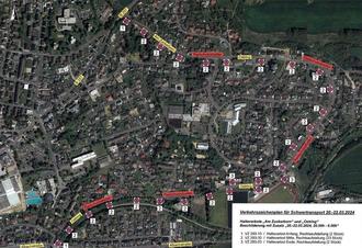 Insbesondere für die Straßen Am Zuckerborn, Ostring und Albachstraße gilt ein absolutes Halteverbot. Dort parkende Fahrzeuge müssen abgeschleppt werden, damit die Transporte reibungslos ablaufen können.