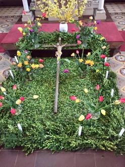 Am Gründonnerstag wird von den Kindern das „Heilige Grab“ im Mittelgang der Kirche durch ein von Kerzen, Palmzweigen und Blumen umgebenes Kruzifix dargestellt.
