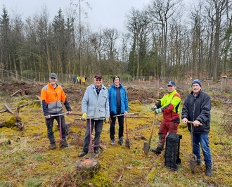Bürgermeister Joachim Kandels, die Beigeordneten Herr Michael Ringelstein und Frau Katharina Gangolf, Mitglieder des Stadtrats, des Hauptausschusses und Mitglieder des Eifelvereins e.V. Ortsgruppe Bitburg zeigten ihre Verbundenheit mit unserem Wald bei einer Pflanzaktion im Stadtwald Bedhard.