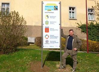 Dies ist jetzt auch an der größten Kreuzung in Bad Köstritz am Julius-Sturm-Platz für jedermann sichtbar. Auf einem neuen Schild wird auf die Fairtrade-Partnerstädte Bad Köstritz, Bad Arolsen und Bitburg sowie auf die kommunale Nachhaltigkeitspartnerschaft mit Huamantla hingewiesen.