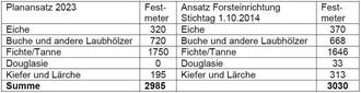 In den einzelnen Baumarten ist folgender Holzeinschlag geplant: