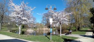 Auch in Bitburg gab es in diesem Frühjahr eine Kirschblütenpracht. Im Waisenhauspark stehen seit 2018 direkt am Weiher zwei japanische Kirschbäume, die damals vom früher in Bitburg stationierten US-Pilot Dr. John Edward Brennan und seiner Frau Jutta an die Stadt übergeben worden waren.