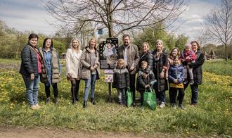 Kinder und Erwachsene freuen sich über den neuen Schnullerbaum in Bitburg