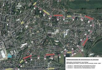 Insbesondere für die Straßen Am Zuckerborn, Ostring und Albachstraße gilt ein absolutes Halteverbot. Dort parkende Fahrzeuge müssen abgeschleppt werden, damit die Transporte reibungslos ablaufen können.