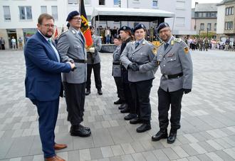 Schon am frühen Nachmittag bot die Bitburger Innenstadt ein seltenes Bild. Zahlreiche junge Soldatinnen und Soldaten in Uniform bevölkerten die Fußgängerzone und schauten sich gemeinsam mit ihren Familienangehörigen die Stadt an, in der sie am Nachmittag ihr feierliches Gelöbnis ablegen sollten.
