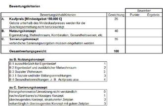 Mit der Bewerbung, spätestens jedoch vor Kaufvertragsabschluss, ist ein Bonitätsnachweis für den Kauf und die Umsetzung des Konzeptes vorzulegen.