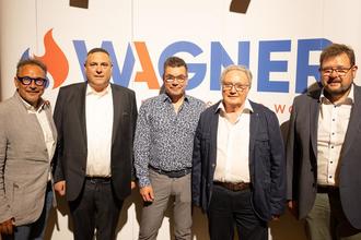 v.l.n.r.: Geschäftsführer der Firma Wagner Horst Wagner, Michael Wagner und Joachim Kiesch gemeinsam mit dem Ersten Kreisbeigeordneten Michael Ludwig und Bürgermeister Kandels