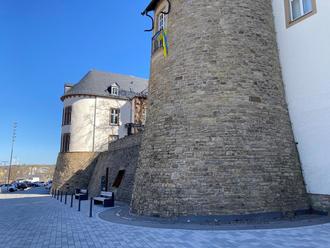 Im römischen Turm des Rathauses befindet sich das Trauzimmer des Standesamtes Bitburg (Stadt).
