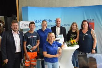 Die Stadtverwaltung Bitburg präsentierte sich mit einem Stand auf der zweitägigen Jobmesse in der Bitburger Stadthalle um die verschiedenen Ausbildungsberufe vorzustellen. Die Stadtverwaltung Bitburg ist Dienstleisterin für die Bitburger Bürgerinnen und Bürger. Neben der Verwaltung selbst sind ca. 300 Mitarbeiterinnen und Mitarbeiter auch bei den Stadtwerken, dem städtischen Bauhof, den Kindertagesstätten und Schulen sowie weiteren öffentlichen Einrichtungen täglich für die Stadt Bitburg im Einsatz.