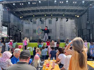 Mit ganz viel Musik, Tanz und Spaß begeisterten die beteiligten Künstlerinnen und Künstler ihr Publikum und sorgten für gute Laune auf allen Schauplätzen. Selbst ein Regenschauer am Montagabend sorgte nur für eine kurze Unterbrechung des bunten Treibens. Ansonsten gab es dank der vielen Helfer wieder einen absolut reibungslosen Ablauf.