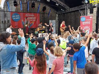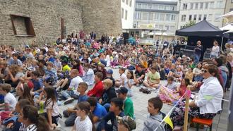 Alle Kinder und Jugendlichen von 6-16 Jahren können an ihm teilnehmen. Eröffnet wurde er am 11. Juli mit einem Kinderkonzert auf dem Grünen See. Julia Reidenbach und ihre vier Musiker begeisterten die Kinder, die sich in einer großen Gemeinschaft von Schülern und Schülerinnen aus verschiedenen Bitburger Schulen sichtlich wohlfühlten. Sie hörten zu, sangen mit und bewegten sich zu eingängigen Melodien und Texten. Auch die Bandmitglieder waren erfreut über die Bedingungen, die sie in Bitburg vorfanden: Tolle Technik und sehr aufmerksame Kinder. „Das ist nicht selbstverständlich“, lautete das Feedback eines Musikers.