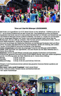 Während des gesamten Sommers können LESESOMMER-Bücher, aber auch andere ausgeliehen werden. Die Öffnungszeiten der Städt. Bibliothek der Dr.-Hanns-Simon-Stiftung: