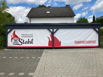 Die Anlegung eines Sandsacklagers war ein Ziel des Maßnahmenkataloges des vom Ortsbeirat beschlossenen Starkregen- und Hochwasservorsorgekonzeptes. Der Standort des zentralen Lagers ist am Feuerwehrgerätehaus. Die Einhausung der Lagerstelle ist jetzt abgeschlossen. Die dort gelagerten Sandsäcke sind gegen Witterungseinflüsse und Sonneinstrahlung abgeschirmt. Die Kapazität ist für rd.1.000 Sandsäcke ausgelegt, die in Gitterboxen à 60 Stück gelagert sind. Im Bedarfsfall können die Sandsäcke schnell an die jeweiligen Einsatzorte in der Ortslage Stahl transportiert werden. Die Vorhaltung der Säcke erfolgt ausschließlich für Starkregen- oder Hochwasserereignisse. Die Verwendung kann nur durch die Einsatzkräfte der Feuerwehr freigegeben bzw. angeordnet werden. Ein private Nutzung ist nicht möglich.