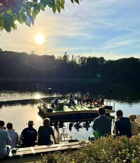 Für das Event wird extra eine schwimmende Wasserbühne gebaut, auf der die Band spielt. So kann das Konzert sitzend vom Ufer, wie auch von der See-Terrasse oder dem Vorplatz in vollen Zügen genossen werden. Die Musik reicht dabei von chilligen Klassikern aus den 50er Jahren, bis hin zu aktuellen Charts und Rock/Pop-Hits. Wer die Band noch nicht kennt: Die Rainer Tures Band versteht es, wie kaum eine andere Band, bekannte Hits neu zu arrangieren und im akustischen Sound neu zu präsentieren.