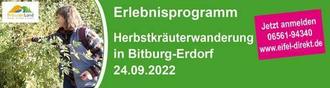 Vorherige Anmeldung erforderlich bei der Tourist-Information Bitburger Land, Tel.: 06561-94340, per E-Mail: info@eifel-direkt.de oder online: www.eifel-direkt.de/erlebnisprogramm