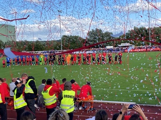 Am Ende dankte FCB-Stadionsprecher Franz Olinger allen beteiligten Organisationen für ihren vorbildlichen Einsatz. FC Bitburg, Polizei, THW, DRK, viele freiwillige Helfer und die Bediensteten der Stadt Bitburg, insbesondere der städtische Bauhof und das Ordnungsamt, haben eindrucksvoll gezeigt, wie man in kürzester Zeit ein solches Ereignis auf die Beine stellt.