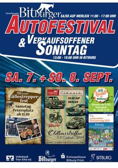 Ein außergewöhnliches Wochenende können auch wieder die Freunde der schnellen Flitzer und edlen Karossen erleben. Die Gemeinschaft der Autohändler lädt am 7. und 8. September zum Bitburger Autofestival auf Merlick ein. Dort präsentieren die Händler ihre schicksten Modelle, vielleicht kann auch das ein oder andere Schnäppchen gemacht werden, und darüber hinaus gibt es ein attraktives Rahmenprogramm für Groß und Klein.