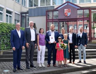 Den Glückwünschen des Landrates schlossen sich der Erste Beigeordnete Michael Ringelstein, Büroleiter Thomas Mayers, Personalrat Florian Haus sowie Ehefrau Maria Kandels und die Töchter Miriam, Magdalen und Mattea gerne an.