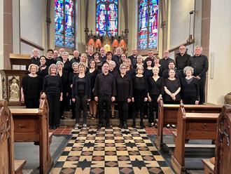 Mitglieder des Projektchors aus der Pfarreiengemeinschaft Bitburg und den Umlandgemeinden vor dem Hochaltar in der Pfarrkirche „St. Laurentius“ Erdorf