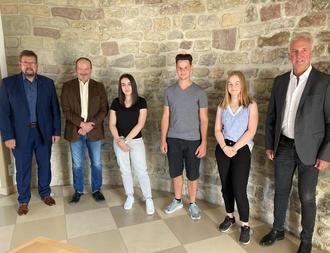 Der Bürgermeister, sein Büroleiter Paul Treuke sowie Personalratsvorsitzender Friedbert Mayer wünschten den neuen Auszubildenden einen guten Start ins Berufsleben sowie eine erfolgreiche Ausbildung bei der Stadt Bitburg.