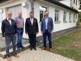 Bild (v.l.) Die neue LED-Innenbeleuchtung im Gemeindehaus in Bitburg-Masholder haben vor Ort begutachtet:: Berthold Steffes, Thomas Kröffges, Joachim Kandels und Christian Nathem
