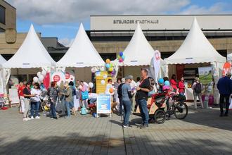 Stände der Ehrenamts-Organisationen vor der Stadthalle…