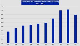 Im Jahr 2024 hat sich Bitburgs Einwohnerzahl erstmals seit Jahren verringert. Waren zum Jahresende 2023 noch 17.555 Personen in Bitburg registriert, so konnten zum 31.12.2024 nur noch 16.459 Personen gezählt werden. Das sind 1.096 weniger als ein Jahr zuvor. Die Verringerung hängt wohl überwiegend mit der Schließung der AfA Bitburg im Laufe des Jahres 2024 zusammen. Betroffen ist die Zahl der Einwohner mit Hauptwohnsitz, während sich die Zahl der Nebenwohnsitze kaum verändert hat. Das ergibt sich aus der jetzt vorgelegten Statistik des Einwohnermeldeamtes.