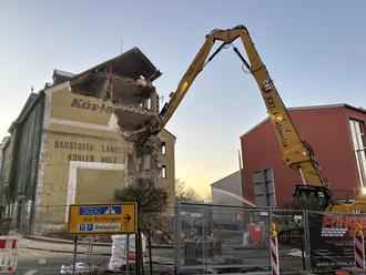 Am 13. Januar haben die Abbrucharbeiten für das alte Köster-Gebäude im Karenweg 18 in Bitburg begonnen. Das marode Geschäftshaus der Firma Köster muss einem neuen Wohn- und Geschäftskomplex weichen.