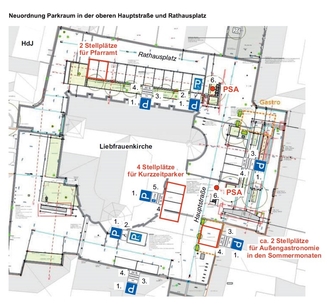 Die Bauarbeiten zur Neugestaltung des Platzes rund um die Liebfrauenkirche inklusive Rathausplatz sind inzwischen abgeschlossen. Nach der Fertigstellung sind nun auch die Parkplätze entsprechend der Planung einzurichten.
