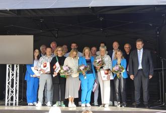 Michaela Noe, Avni Fetai, Waltraud Wengler, Landrat Andreas Kruppert, Frau Barbara Reinert-Benedyczuk (in Vertretung für das MINISTERIUM FÜR BILDUNG, Frau Ministerin Dr. Hubig) Martin Jutz, Architekt, Bürgermeister Kandels
