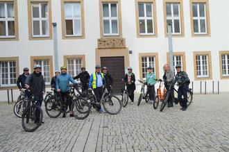 Start des Rad-Exkursion auf dem Rathausplatz.