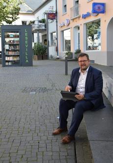 Bürgermeister Joachim Kandels nutzt den Hotspot am Petersplatz.