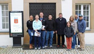 Bürgermeister joachim Kandels (Bildmitte) mit amerikanischen Gästen vor dem Rathaus.