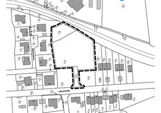 Abbildung: Geltungsbereich des Bebauungsplans „Albachstraße“ (schwarz gestrichelt), genordet, ohne Maßstab.