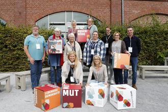 Am Ende des zweitägigen Netzwerktreffens in Schwerte stellten sich Vertreterinnen und Vertreter Engagierter Städte aus Rheinland-Pfalz zum gemeinsamen Foto.