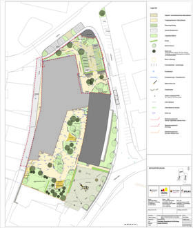 Dunkelgrün zeigt die Neupflanzungen, hellgrün der zu erhaltende Bestand.