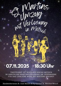Wenn Mötsch in warmem Laternenlicht erstrahlt und Martinslieder durch die Straßen klingen, ist es wieder Zeit für ein ganz besonderes Fest: Der Handwerkerverein St. Josef Mötsch und der Kirchenchor St. Nikolaus Mötsch laden herzlich zum diesjährigen Martinszug am Freitag, den 07.11.2025 ein.