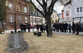 Nach der Kranzniederlegung an der Gedenk-Stele legten nach jüdischem Brauch alle einen Stein nieder, um die Mitbürger der ehemaligen jüdischen Gemeinde Bitburgs und allen Ermordeten zu gedenken, deren Leben von den Nationalsozialisten ausgelöscht wurde.