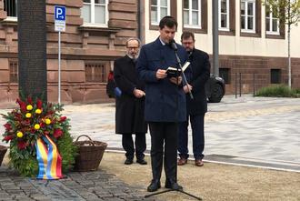 Nach der Begrüßung durch Bürgermeister Joachim Kandels sprach Henri Juda auch in diesem Jahr wieder bewegte Worte zu den Teilnehmerinnen und Teilnehmen. Das Totengebet Kaddisch wurde vom Rabbiner Alexander Grodensky aus Luxemburg vorgetragen. Im Anschluss daran trugen Schülerinnen und Schüler der St.-Matthias-Schule gemeinsam mit ihrer Lehrerin Heike Sonnen einen selbst erarbeiteten Beitrag vor.