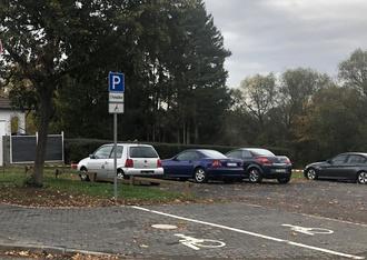 Zwei Behindertenparkplätze an der Parkplatz-Zufahrt.