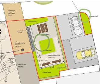 Vorgesehen ist ein „Römischer Garten“ mit südlicher /römischer Bepflanzung. Hier wird auf einer Fläche von 120 qm eine trockenheitstolerante, insektenfreundliche Bepflanzung erfolgen (viele Kräuter und wahrnehmbarer Duft). Zur Station 7 des archäologischen Parcours (Turm O) werden Basaltstufen angelegt. Die Wegfläche wird wassergebunden aus Kalkstein hergestellt. Im Bereich einer neuen Sitzung wird die Fläche in Betonsteinpflaster wie in der Hauptstraße ausgeführt.