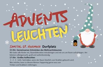 Am Vortag des 1. Advent treffen sich die Mötscher zum "Adventsleuchten" auf dem Dorfplatz. Ab 15 Uhr wird wieder gemeinsam der Weihnachtsbaum geschmückt und um 17 Uhr zum Leuchten gebracht. Jeder ist herzlich willkommen und darf gerne vorweihnachtliches Gebäck und Getränke mitbringen.
