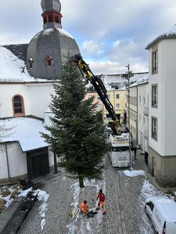Auf dem Rathausplatz wird der Weihnachtsbaum aufgestellt.