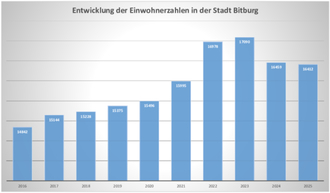 | Bitburg-Stadt: | 12.249 Einwohner (2024: 12.367) |