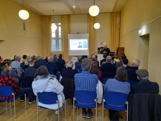 Der Vortrag über Entschädigungsverfahren der Nachkriegszeit im Eifelkreis stieß auf großes Interesse und lockte rund 40 Besucherinnen und Besucher an. Zu Beginn gab Leon Stein von der Universität Trier eine kurze Einführung in das Thema Entschädigungsverfahren im allgemeinen. Anschließend wurden die Fallbeispiele aus dem Kreis von Mitgliedern des Arbeitskreises vorgestellt. In der daran anschließenden Fragerunde konnten viele weiterführende Aspekte thematisiert werden und bei einer kleinen Erfrischung blieb zudem noch Zeit für vertiefende Gespräche.