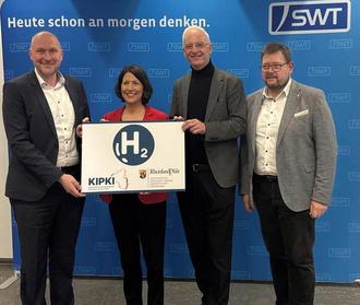 v.l.n.r.: Landrat Andreas Kruppert, Wirtschaftsministerin Daniela Schmitt, Oberbürgermeister und SWT-Verwaltungsratsvorsitzender Wolfram Leibe, Bürgermeister Joachim Kandels.
