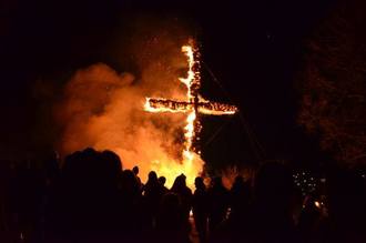 Am Schaefsonndisch, also dem Sonntag nach Fastnacht (dieses Jahr am 26.02.2023), wird die das Hüttenkreuz gebunden und aufgestellt. Mit dem Verbrennen soll der Winter vertrieben werden.